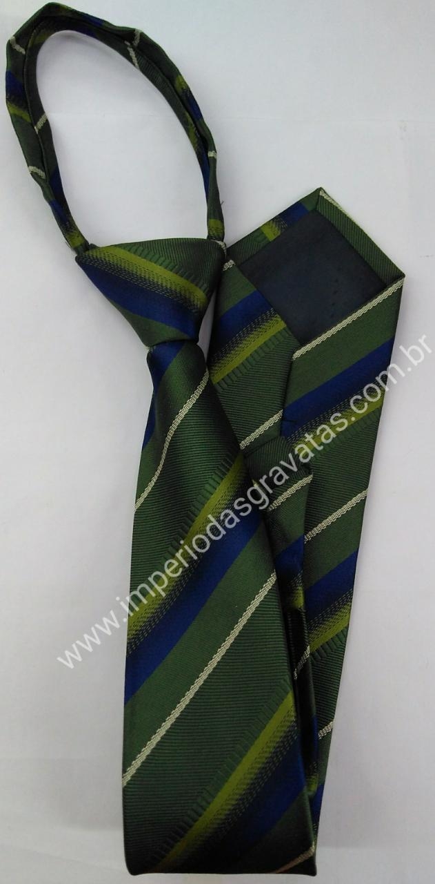 Gravata Skinny de Zíper - Verde Musgo, Azul Marinho e Bege com Linhas Diagonais - COD: LDM16